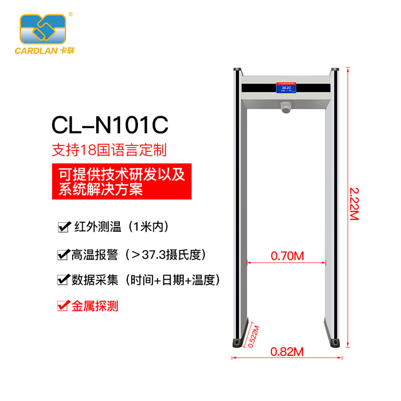 人體自動測溫儀安檢門由卡聯自主研發(fā)生產,主要用于非接觸式異常體溫的初步篩查,檢測速度快,且可以防止人員接觸交叉感染,特別適合用于法院、檢察院、醫(yī)院、地鐵、高鐵、監(jiān)獄、公安局等,以及其他公共場所,包括學校、體育館、娛樂場所(KTV\酒吧等)、機場、車站、港口、展覽館、博物館、銀行、發(fā)電站等。
