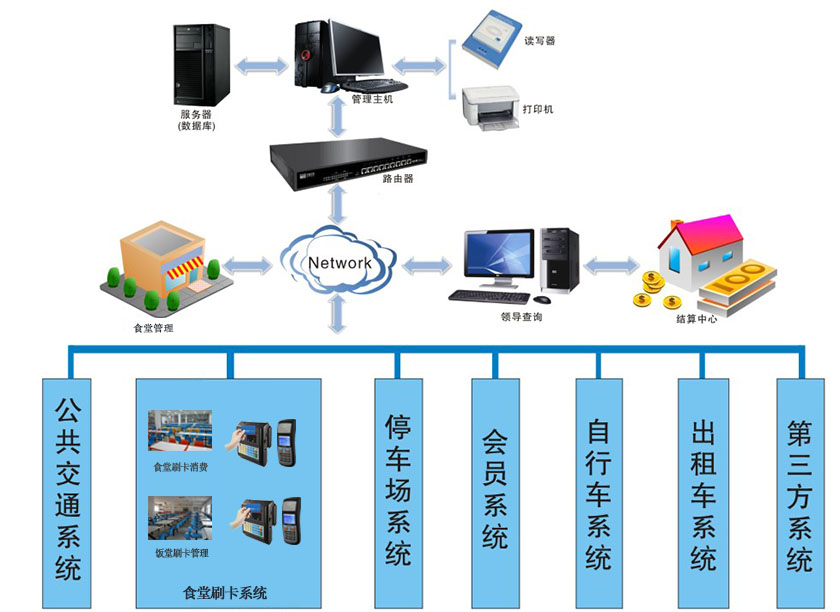 綜合消費:具有定額消費與自由消費、外加同卡同時段消費第二次收取附加額,對卡進行每餐及全天限額消費;