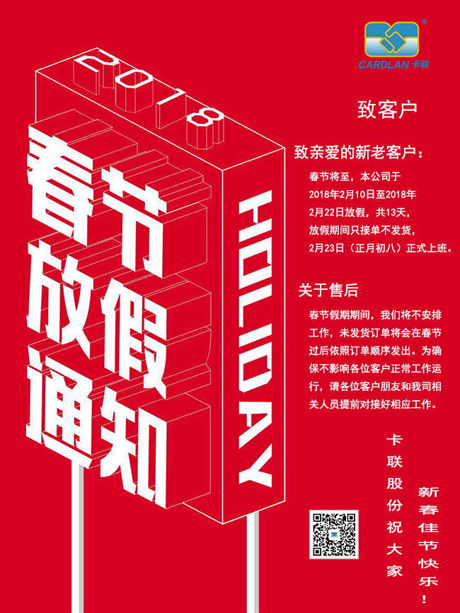 在2018年,卡聯(lián)股份將不斷提升產(chǎn)品和服務質量,與您共筑宏偉藍圖!
